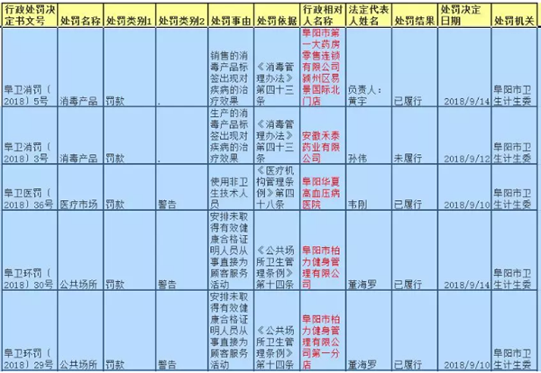 近日,阜阳市卫生计生委2018年9月中旬卫生行政处罚案件一览表公布,涉及阜阳多家医院和大家熟知的柏力健身等多地。