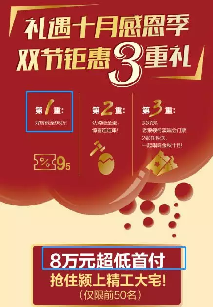 颍上某品牌房企打出买房95折,还可以砸金蛋,甚至前50名买房首付只需8万元!
